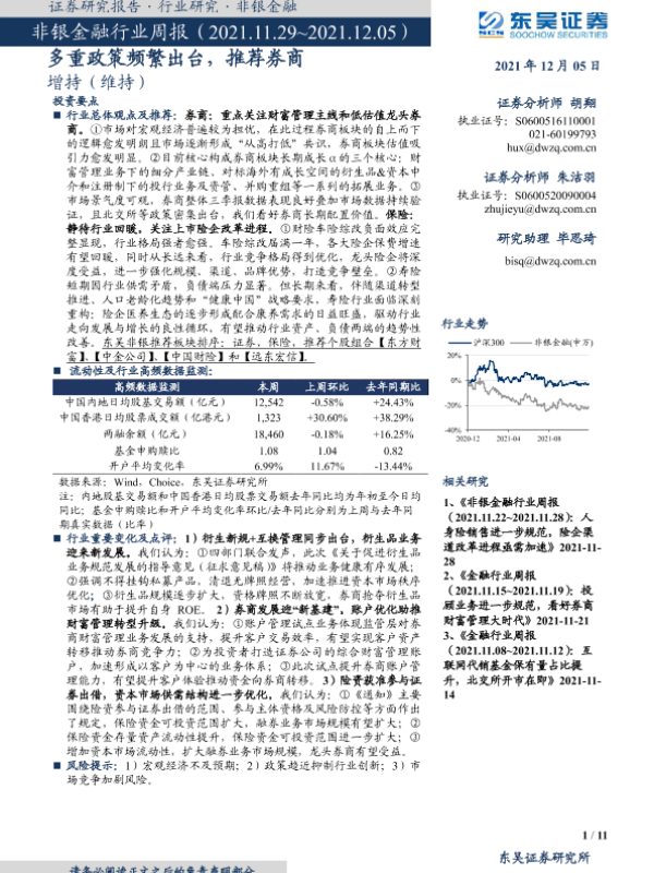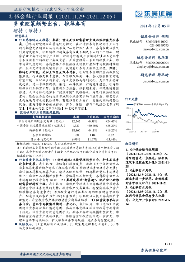【东吴证券】【20211205】非银金融行业周报:多重政策频繁出台,推荐券商-11页