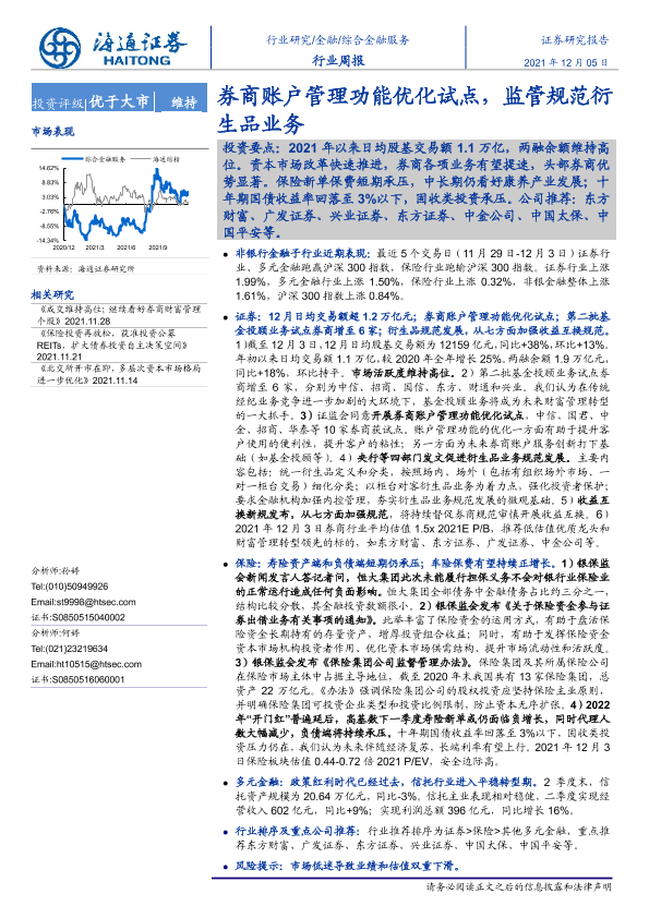 【海通证券】【20211205】综合金融服务行业周报:券商账户管理功能优化试点,监管规范衍生品业务-11页