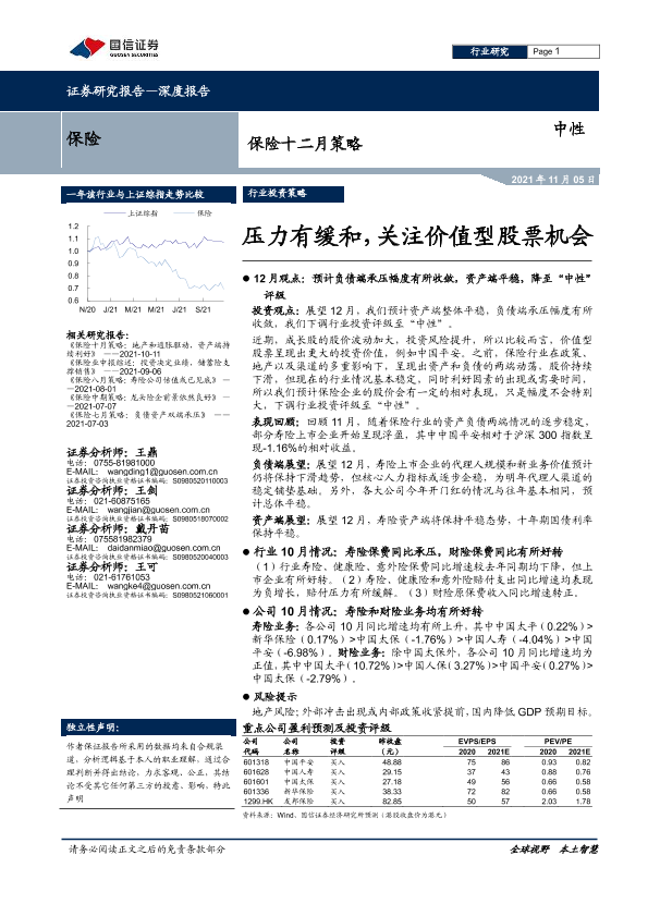 【国信证券】【20211205】保险十二月策略:压力有缓和,关注价值型股票机会-11页
