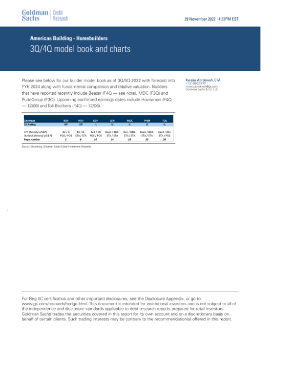 【Goldman Sachs】【20221129】Americas Building - Homebuilders 3Q_4Q model book and charts-36页