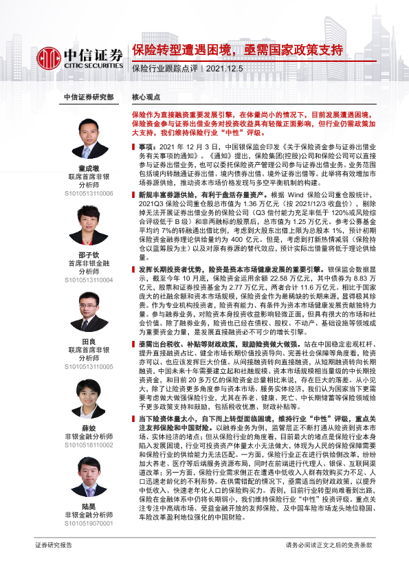 【中信证券】【20211205】保险行业跟踪点评:保险转型遭遇困境,亟需国家政策支持-3页