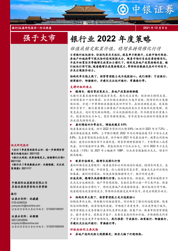 【中银证券】【20211206】银行业2022年度策略:估值底锁定配置价值,稳增长持续催化行情-27页