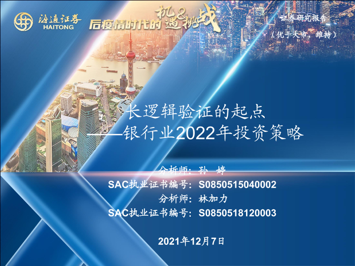 【海通证券】【20211207】银行业2022年投资策略:长逻辑验证的起点-30页