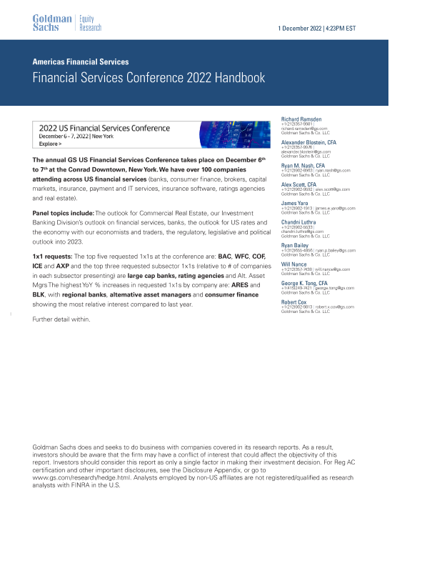 【Goldman Sachs】【20221201】Americas Financial Services_ Financial Services Conference 2022 Handbook-63页