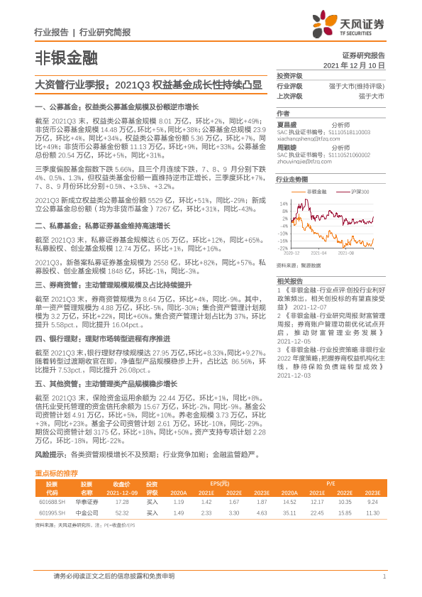 【天风证券】【20211210】大资管行业季报:2021Q3权益基金成长性持续凸显-9页