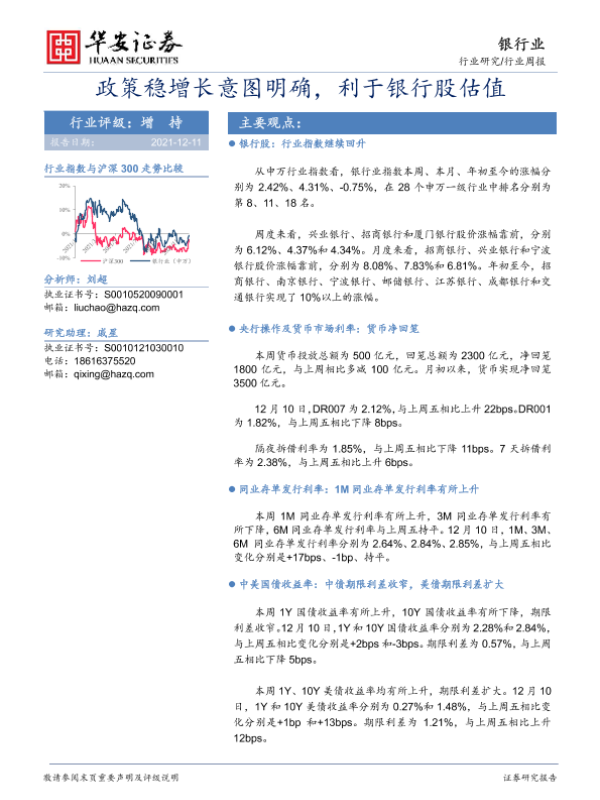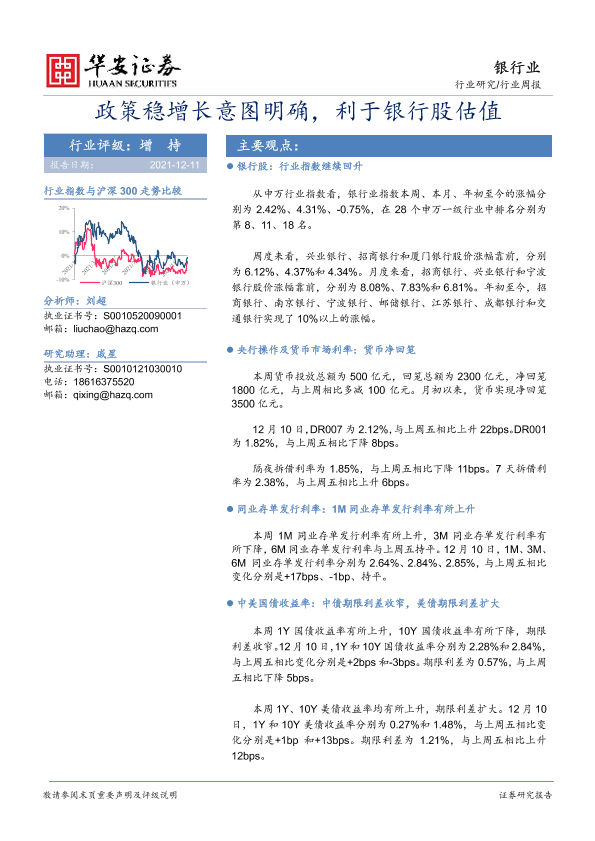 【华安证券】【20211211】银行行业周报:政策稳增长意图明确,利于银行股估值-23页