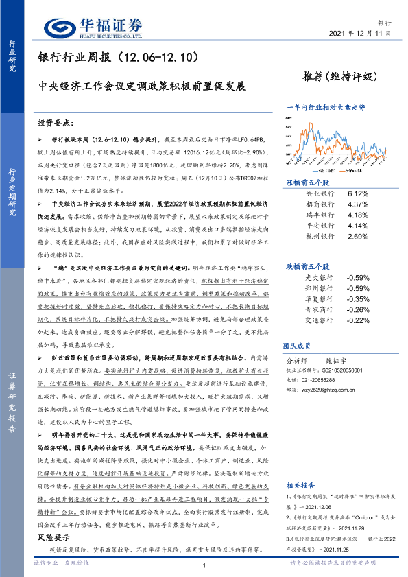 【华福证券】【20211211】银行行业周报:中央经济工作会议定调政策积极前置促发展-17页