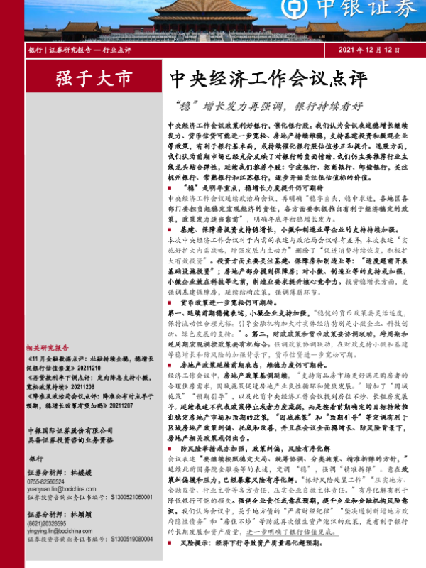 【中银证券】【20211212】中央经济工作会议点评:“稳”增长发力再强调,银行持续看好-3页