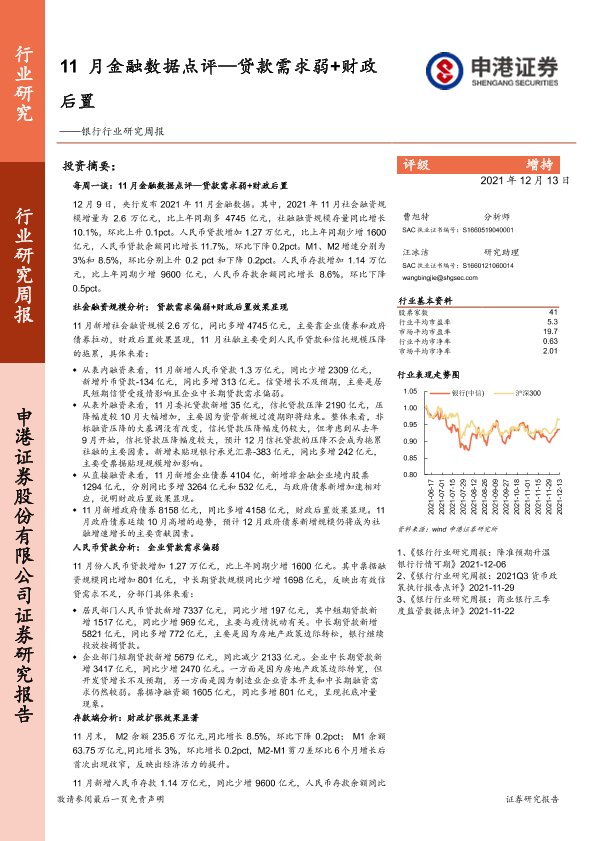 【申港证券】【20211213】11月金融数据点评—贷款需求弱+财政后置-14页