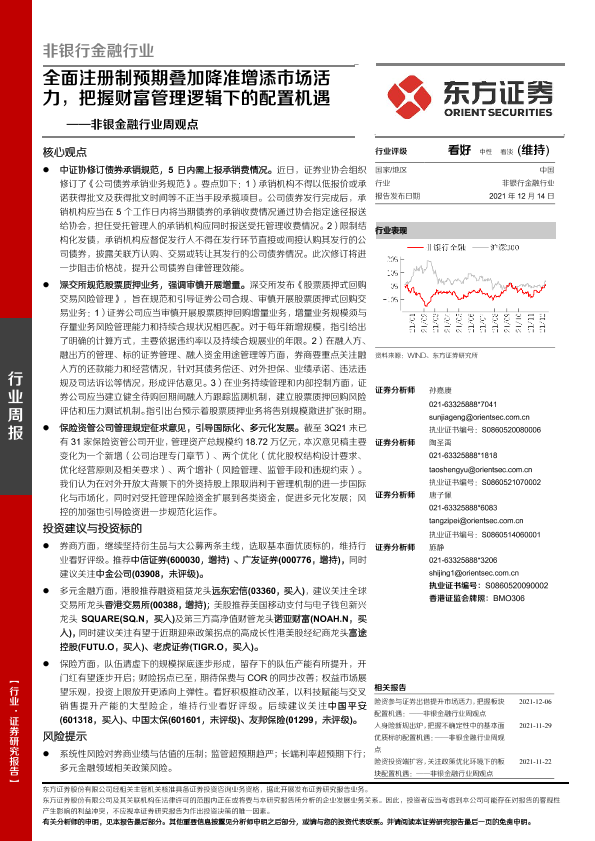 【东方证券】【20211214】非银金融行业周观点:全面注册制预期叠加降准增添市场活力,把握财富管理逻辑下的配置机遇-11页