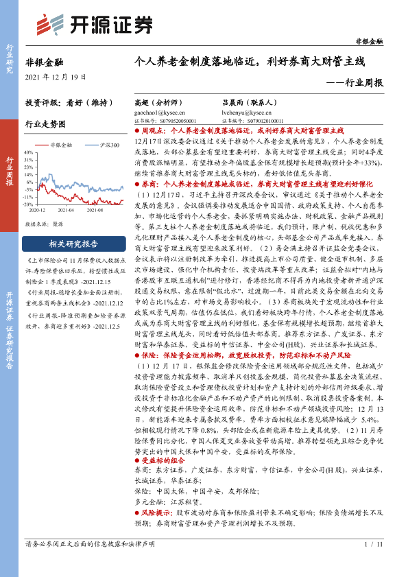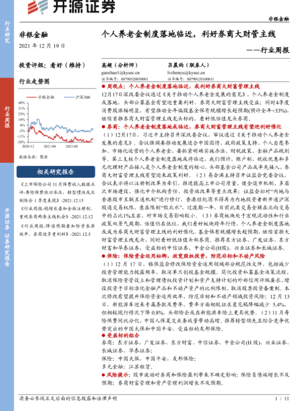 【开源证券】【20211219】非银金融行业周报:个人养老金制度落地临近,利好券商大财管主线-11页