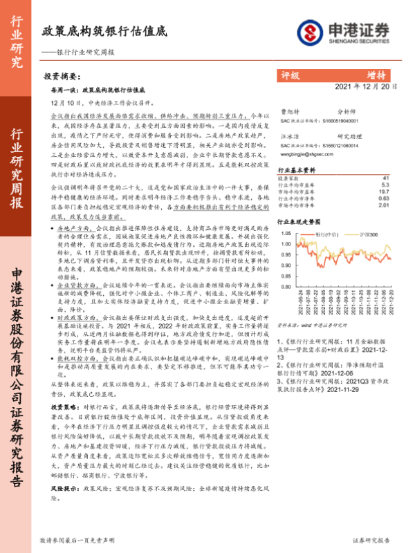 【申港证券】【20211220】银行行业研究周报:政策底构筑银行估值底-11页