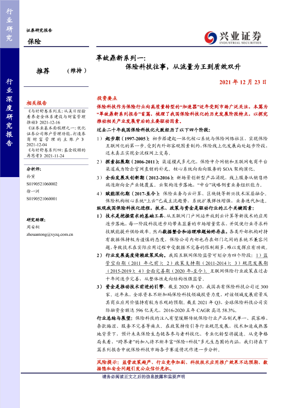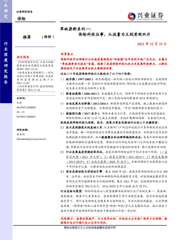 【兴业证券】【20211223】革故鼎新系列一:保险科技往事,从流量为王到质效双升-32页