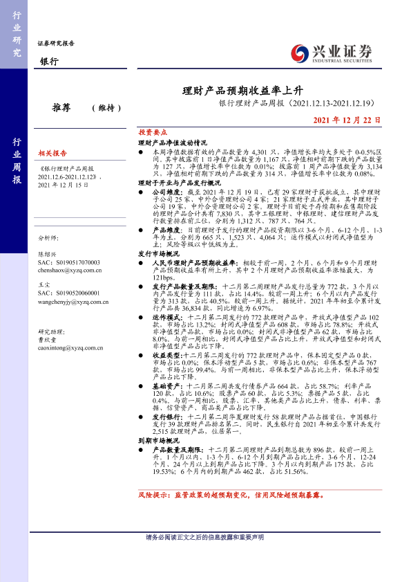 【兴业证券】【20211222】银行理财产品周报:理财产品预期收益率上升-20页