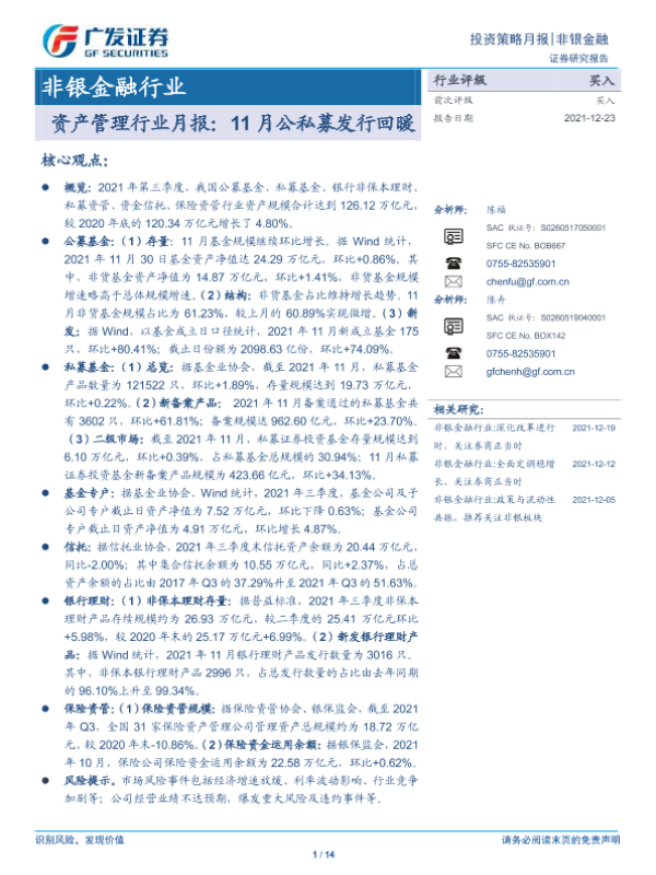 【广发证券】【20211223】资产管理行业月报:11月公私募发行回暖-14页