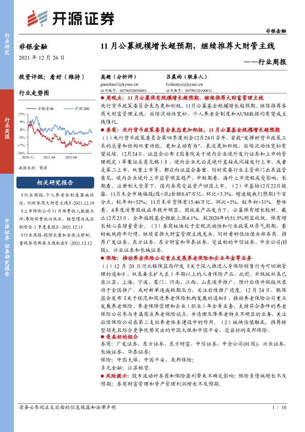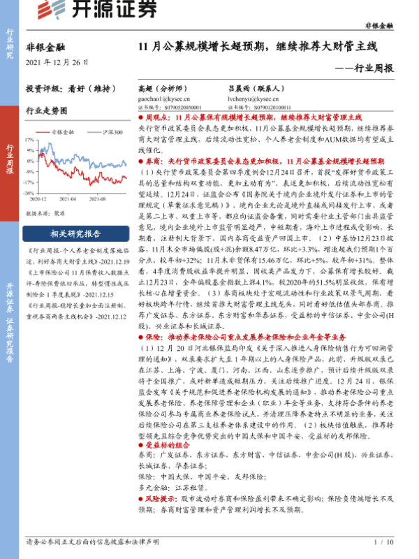 【开源证券】【20211226】非银金融行业周报:11月公募规模增长超预期,继续推荐大财管主线-10页