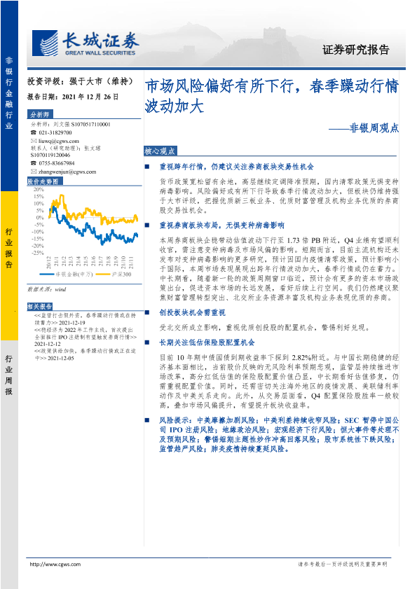 【长城证券】【20211226】非银周观点:市场风险偏好有所下行,春季躁动行情波动加大-35页