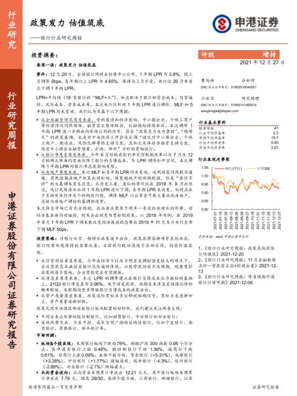 【申港证券】【20211227】银行行业研究周报:政策发力 估值筑底-12页