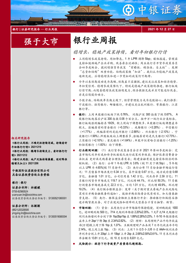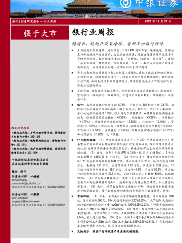 【中银证券】【20211227】银行业周报:稳增长、稳地产政策持续,看好年初银行行情-16页
