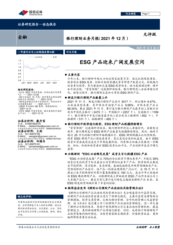 【国信证券】【20211230】银行理财业务月报:ESG产品迎来广阔发展空间-13页