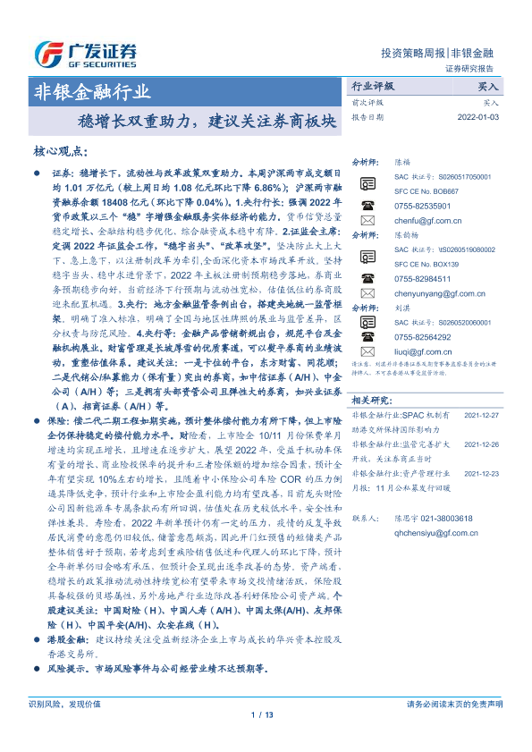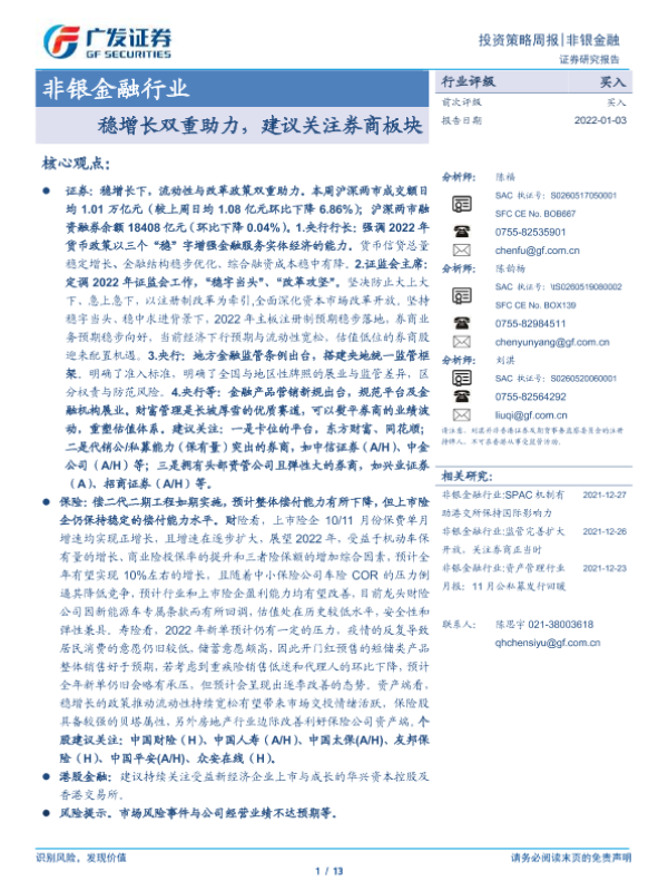 【广发证券】【20220103】非银金融行业投资策略周报:稳增长双重助力,建议关注券商板块-13页