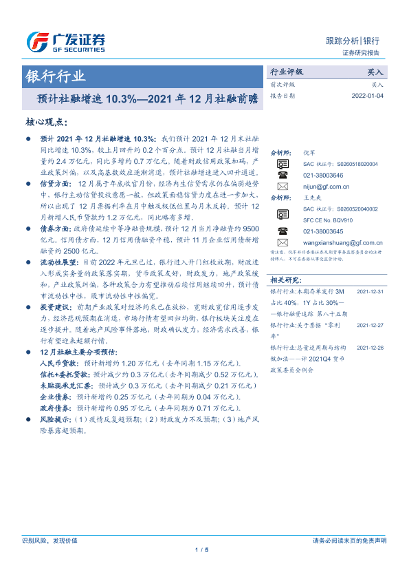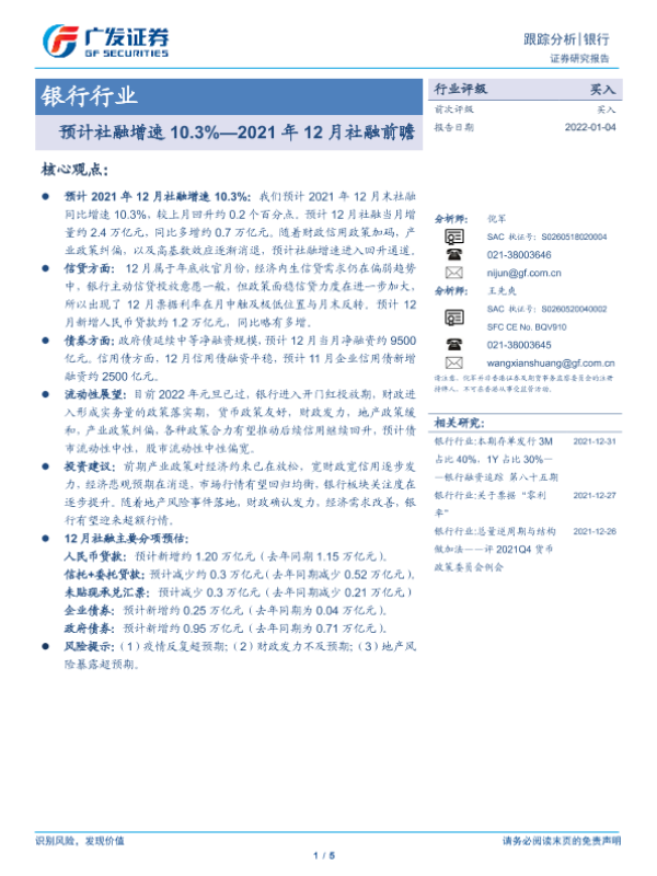 【广发证券】【20220104】2021年12月社融前瞻:预计社融增速10.3%-5页