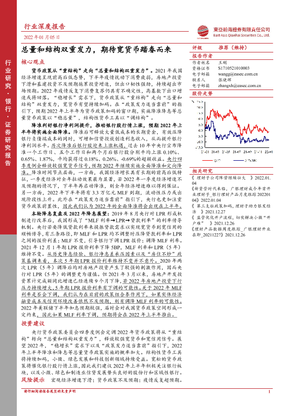 【东亚前海证券】【20220105】银行业深度报告:总量和结构双重发力,期待宽货币踏春而来-14页