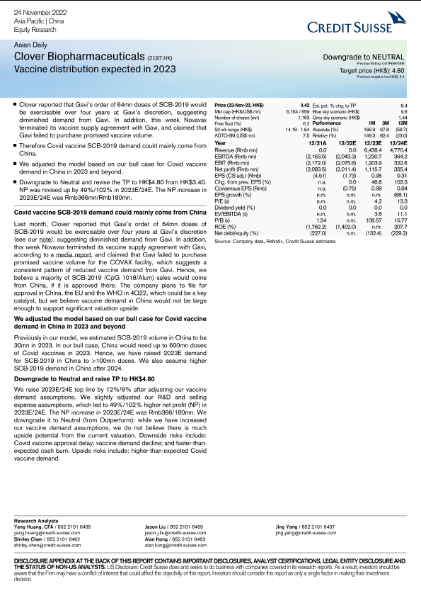 【Credit Suisse】【20221124】Clover Biopharmaceuticals (2197.HK)-5页
