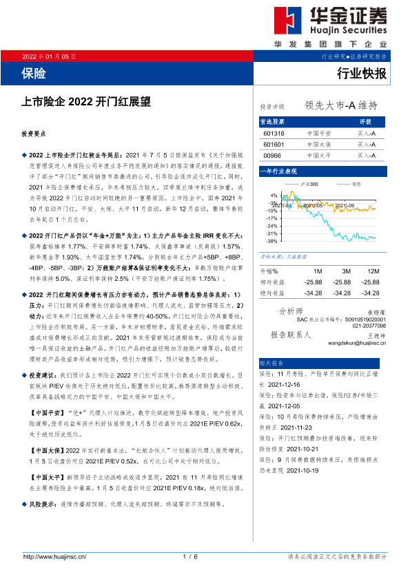 【华金证券】【20220105】保险行业快报:上市险企2022开门红展望-6页