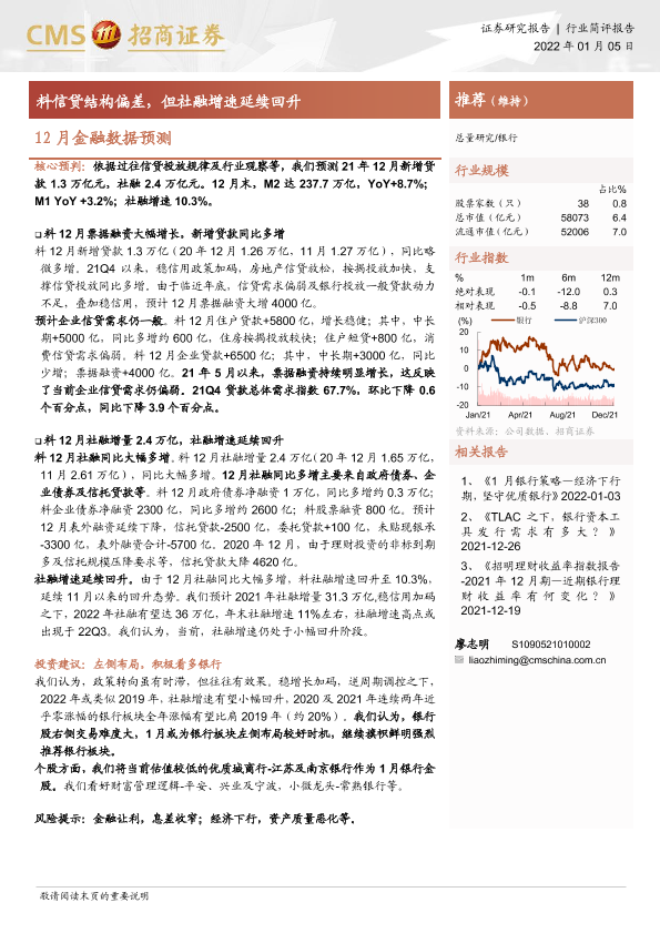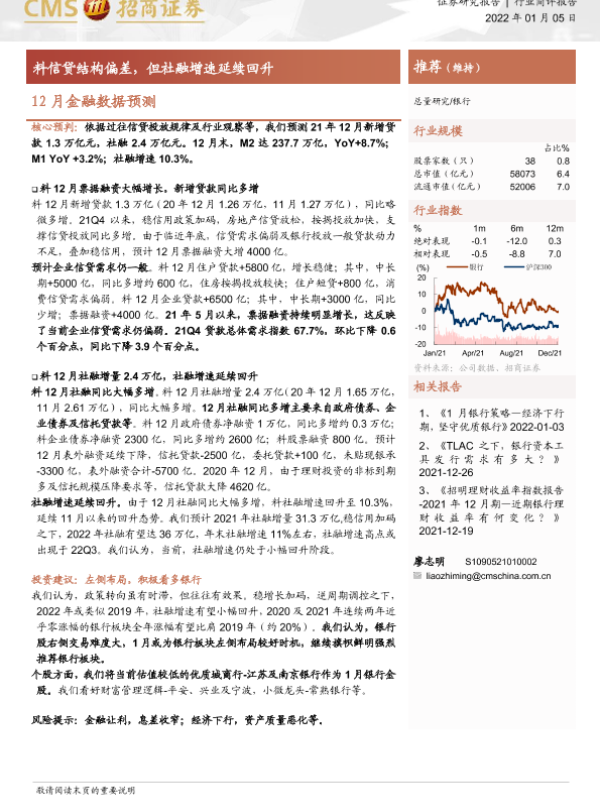 【海通证券】【20220105】银行12月金融数据预测:料信贷结构偏差,但社融增速延续回升-4页