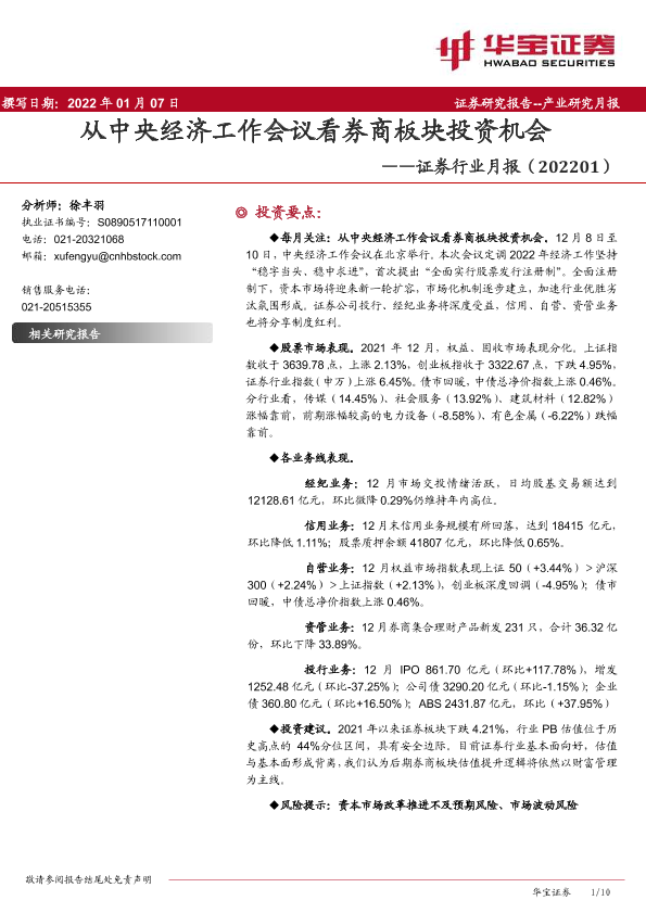 【华宝证券】【20220107】从中央经济工作会议看券商板块投资机会-10页