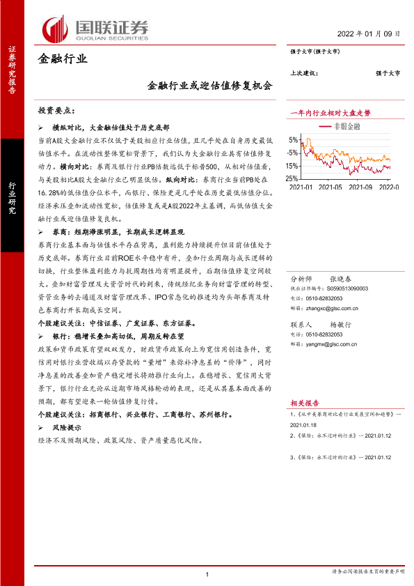 【国联证券】【20220109】金融行业或迎估值修复机会-23页