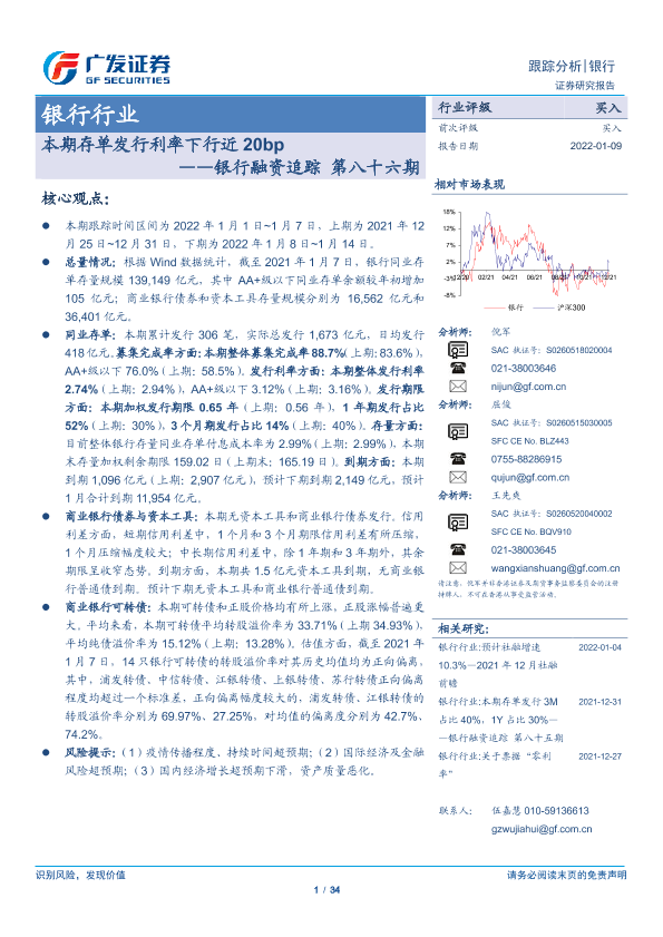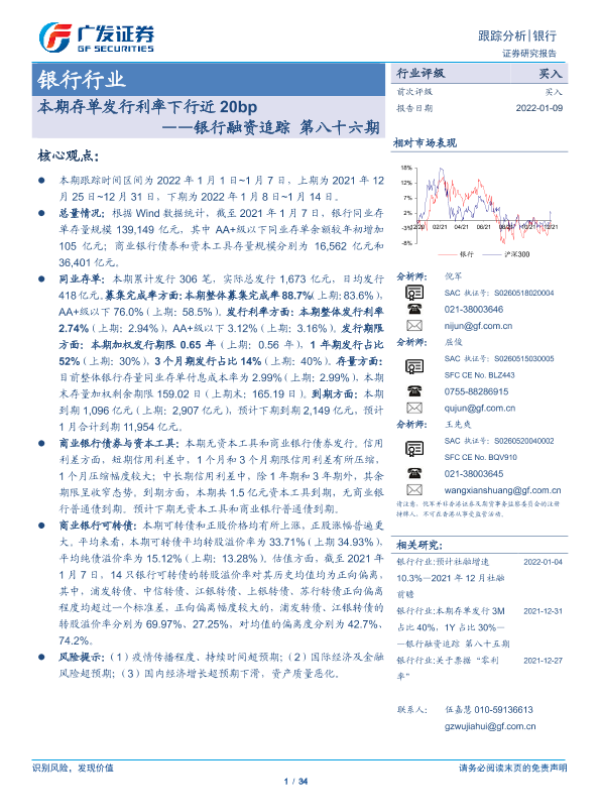 【广发证券】【20220109】银行融资追踪第八十六期:本期存单发行利率下行近20bp-34页