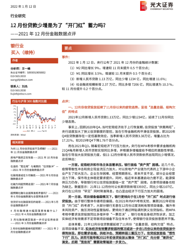 【光大证券】【20220112】12月份贷款少增是为了“开门红”蓄力吗?-6页