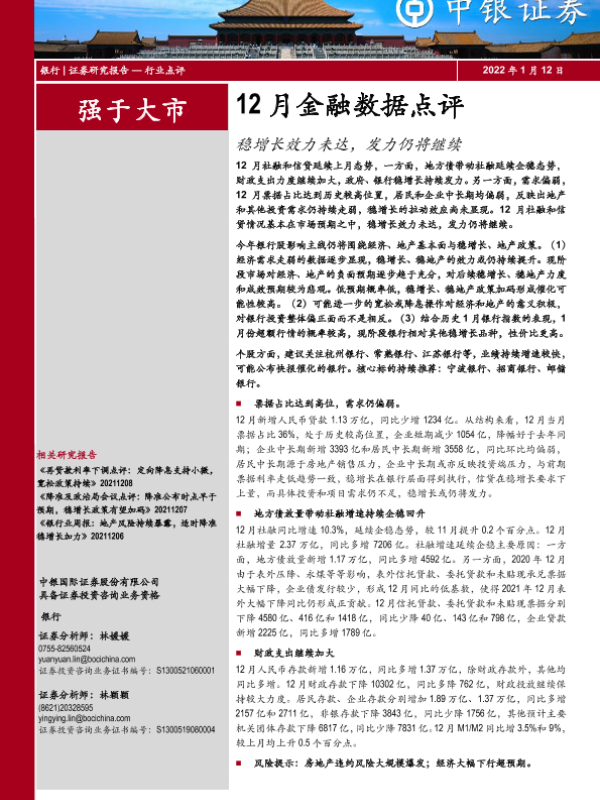 【中银证券】【20220112】12月金融数据点评:稳增长效力未达,发力仍将继续-5页