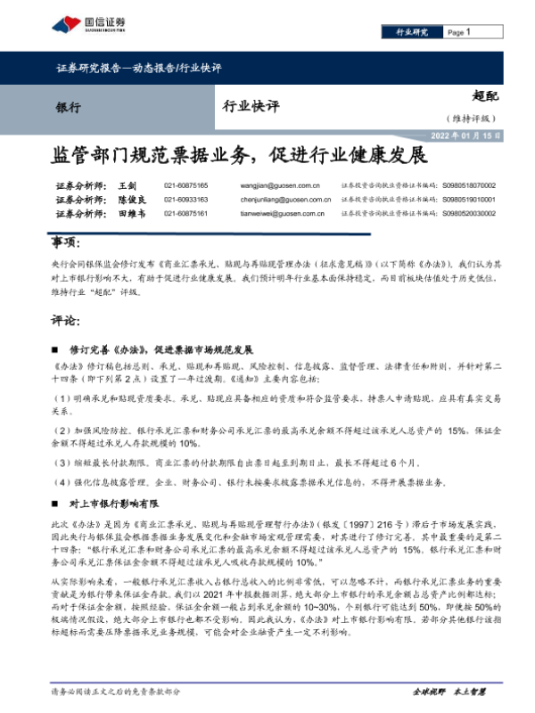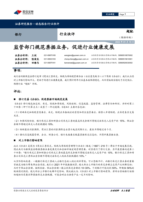 【国信证券】【20220115】银行行业快评:监管部门规范票据业务,促进行业健康发展-4页