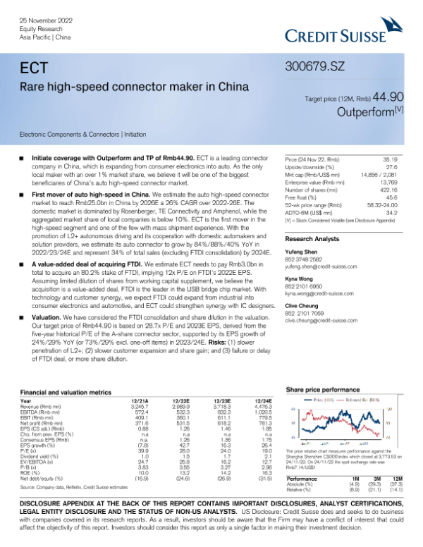 【Credit Suisse】【20221125】ECT Rare high-speed connector maker in China 300679.SZ-38页
