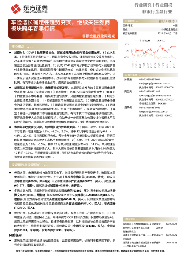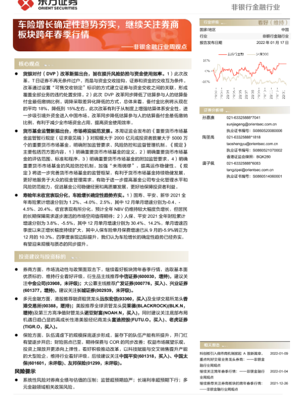 【东方证券】【20220117】非银金融行业周观点:车险增长确定性趋势夯实,继续关注券商板块跨年春季行情-11页