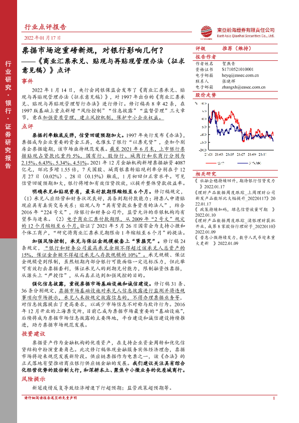 【东亚前海证券】【20220117】商业汇票承兑、贴现与再贴现管理办法(征求意见稿)点评:票据市场迎重磅新规,对银行影响几何?-5页