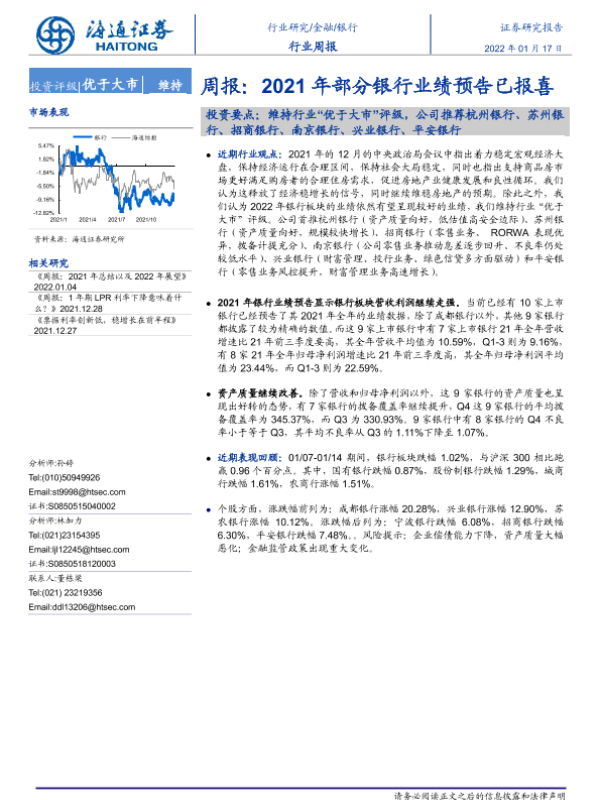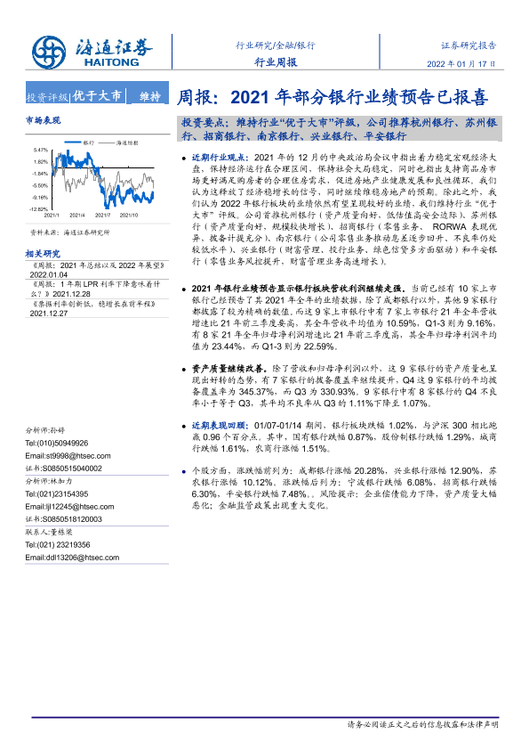 【海通证券】【20220117】2021年部分银行业绩预告已报喜-8页
