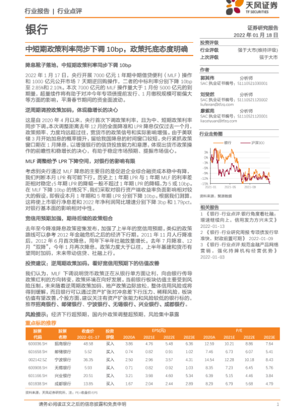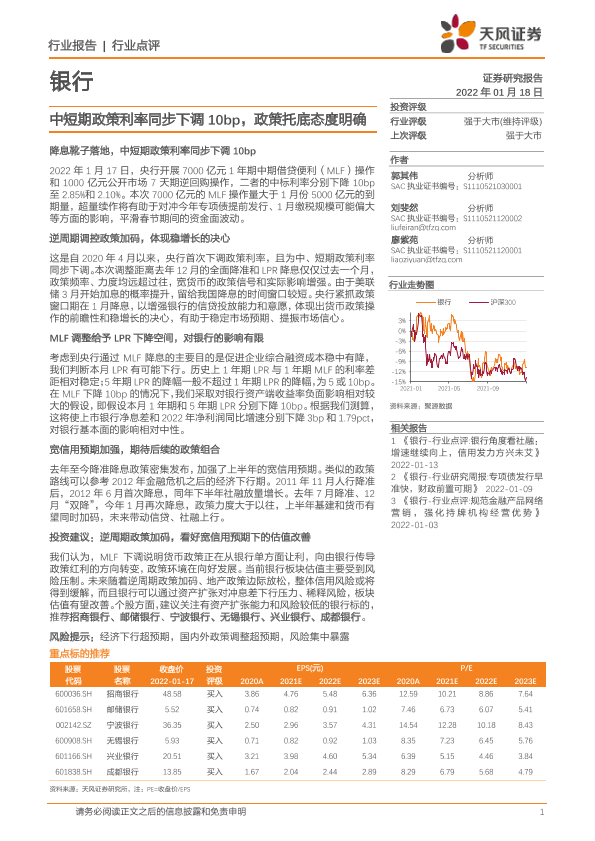【天风证券】【20220118】中短期政策利率同步下调10bp,政策托底态度明确-7页