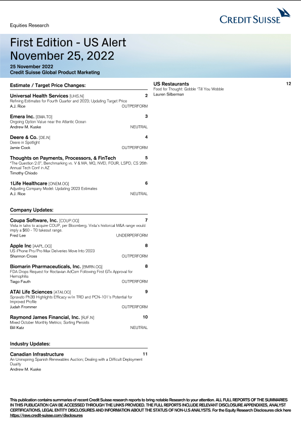 【Credit Suisse】【20221125】First Edition - US Alert-12页