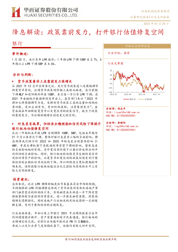 【华西证券】【20220120】银行降息解读:政策靠前发力,打开银行估值修复空间-4页