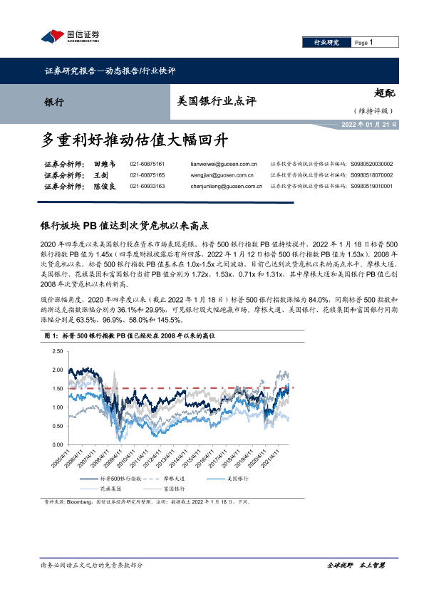 【国信证券】【20220121】美国银行业点评:多重利好推动估值大幅回升-14页