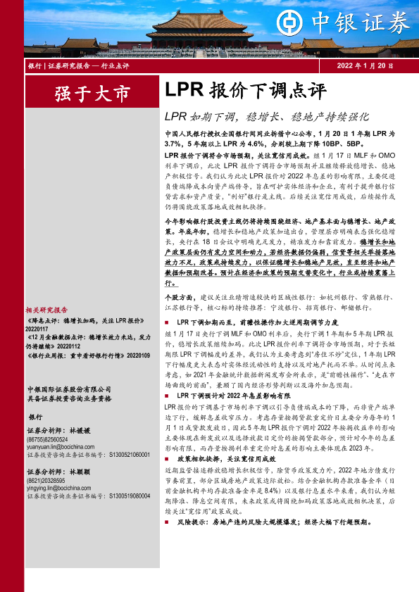 【中银证券】【20220120】银行LPR报价下调点评:LPR如期下调,稳增长、稳地产持续强化-4页