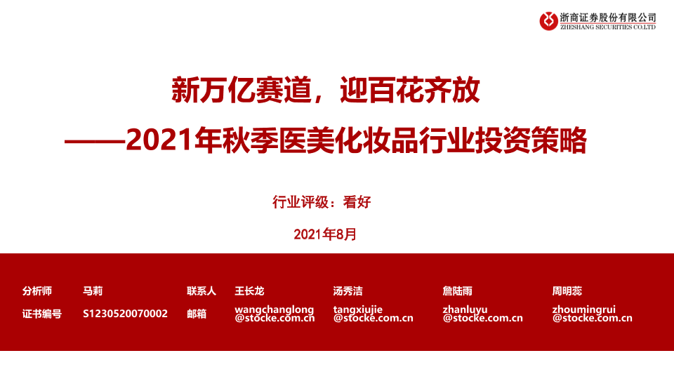 【浙商证券】【20210823】2021年秋季医美化妆品行业投资策略:新万亿赛道,迎百花齐放-53页