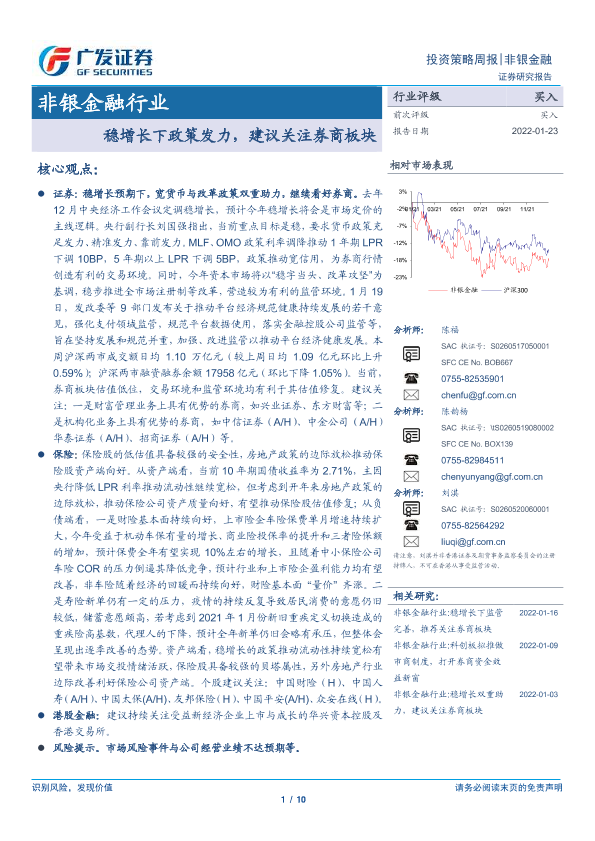 【广发证券】【20220123】非银金融行业投资策略周报:稳增长下政策发力,建议关注券商板块-10页