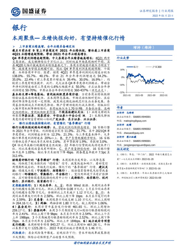 【国盛证券】【20220123】银行本周聚焦:业绩快报向好,有望持续催化行情-12页