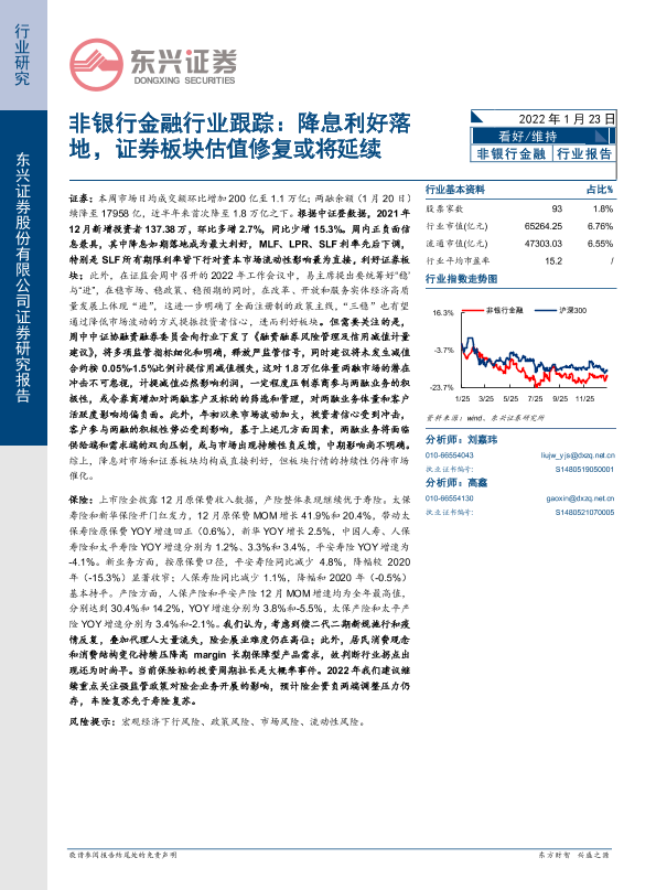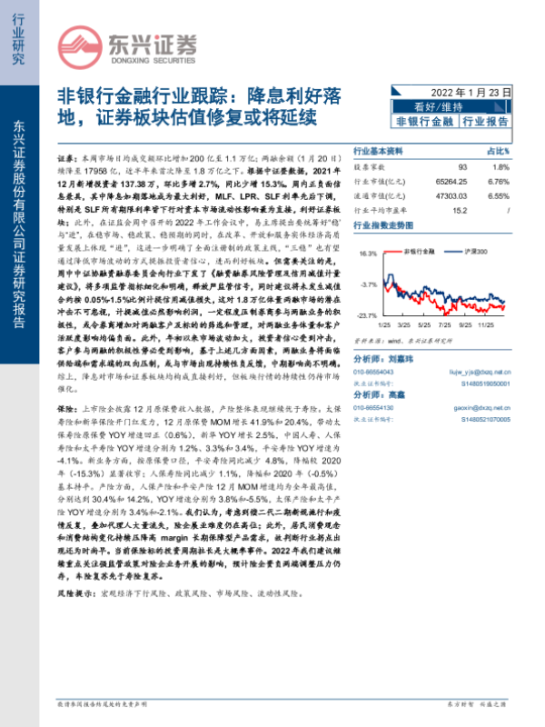【东兴证券】【20220123】非银行金融行业跟踪:降息利好落地,证券板块估值修复或将延续-13页