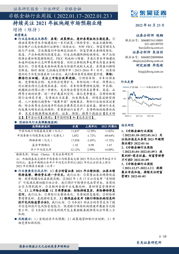 【东吴证券】【20220123】非银金融行业周报:持续关注2021年板块超市场预期业绩-13页